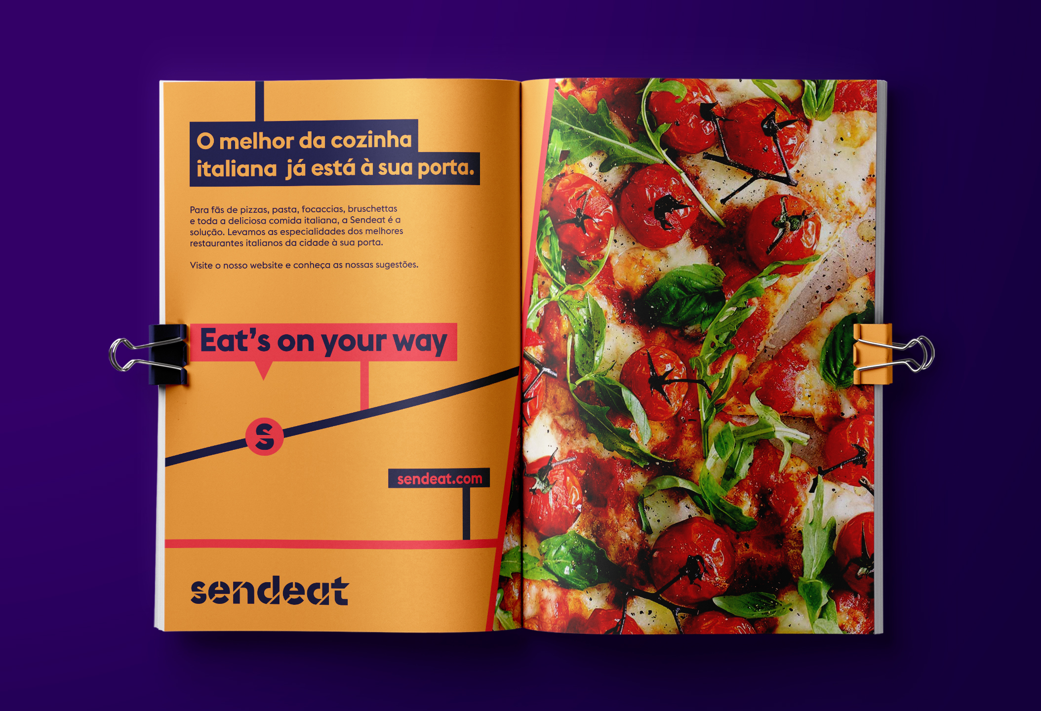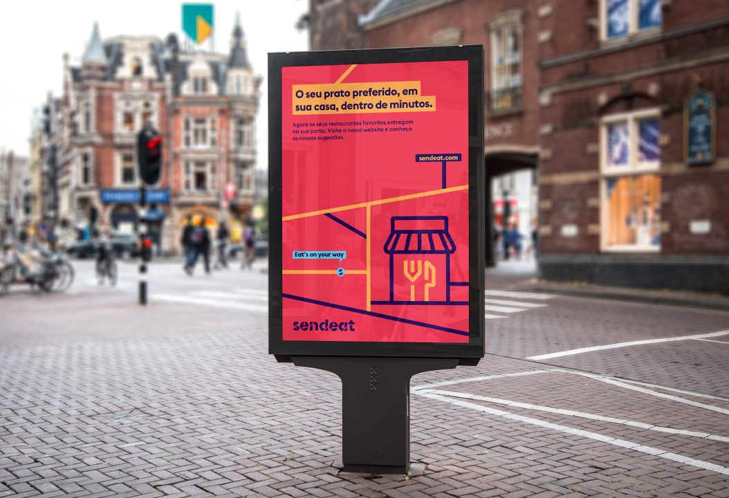 感覺,并迎合不同的口味和選擇。我們還決定創建一個k品牌廣告語,以使用一個常用短語來最好地表達SendEAT的品牌承諾,并使之適應公司的主要服務現實:“隨您吃”。結果就是簡單而充滿活力的餐飲品牌VI形象設計,具有現代的外觀和清晰的信息:我們希望將最好的食物提供給最好的客戶-我們的客戶。我們從訂單經過的城市地圖上獲得了靈感。我們決定對單詞的小寫字母進行模版處理,就好像它們被命令所經過的街道所打斷以達到他們的命運一樣。就像公司的服務一樣,使用了大膽的顏色,以給人以變化和活力的感覺,并迎合不同的口味和選擇。