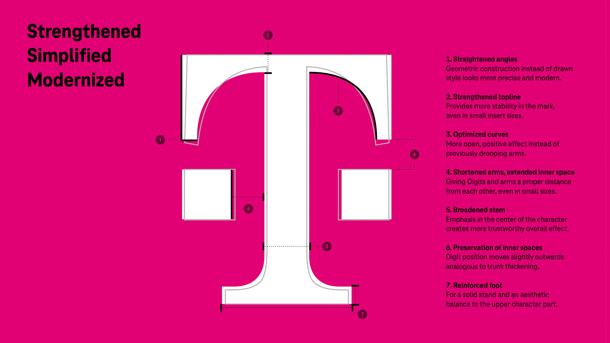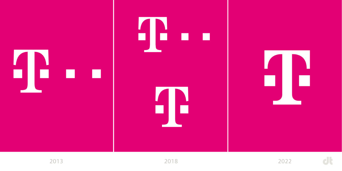 即使現在有兩位數字,T 標志也是明確無誤的,顯然是 Telekom 品牌的發件人。與耐克、蘋果、梅賽德斯或奧迪等具有強大(廣告)影響力的其他品牌一樣,長期以來沒有必要顯示全名。T-signet 的減少創造了一個緊湊且對稱的標志 - 在處理和可變性方面,在企業設計中沒有更好/更實用的解決方案。