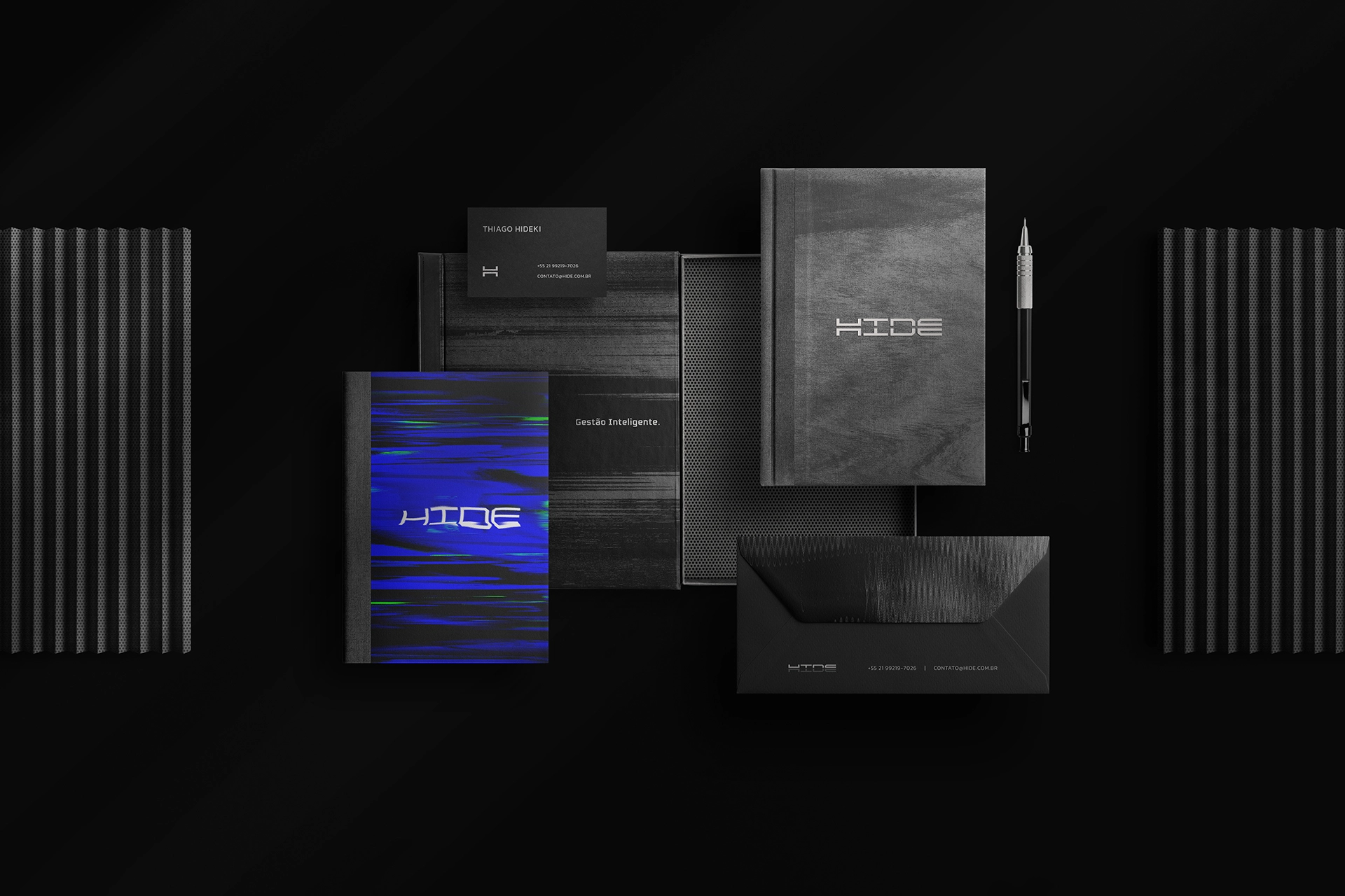我們在其中一個版本的徽標中采用了“隱藏”的概念,其中每個字母對稱地分成兩半,下半部分隱藏在背景中,帶來了隱藏的字面含義。